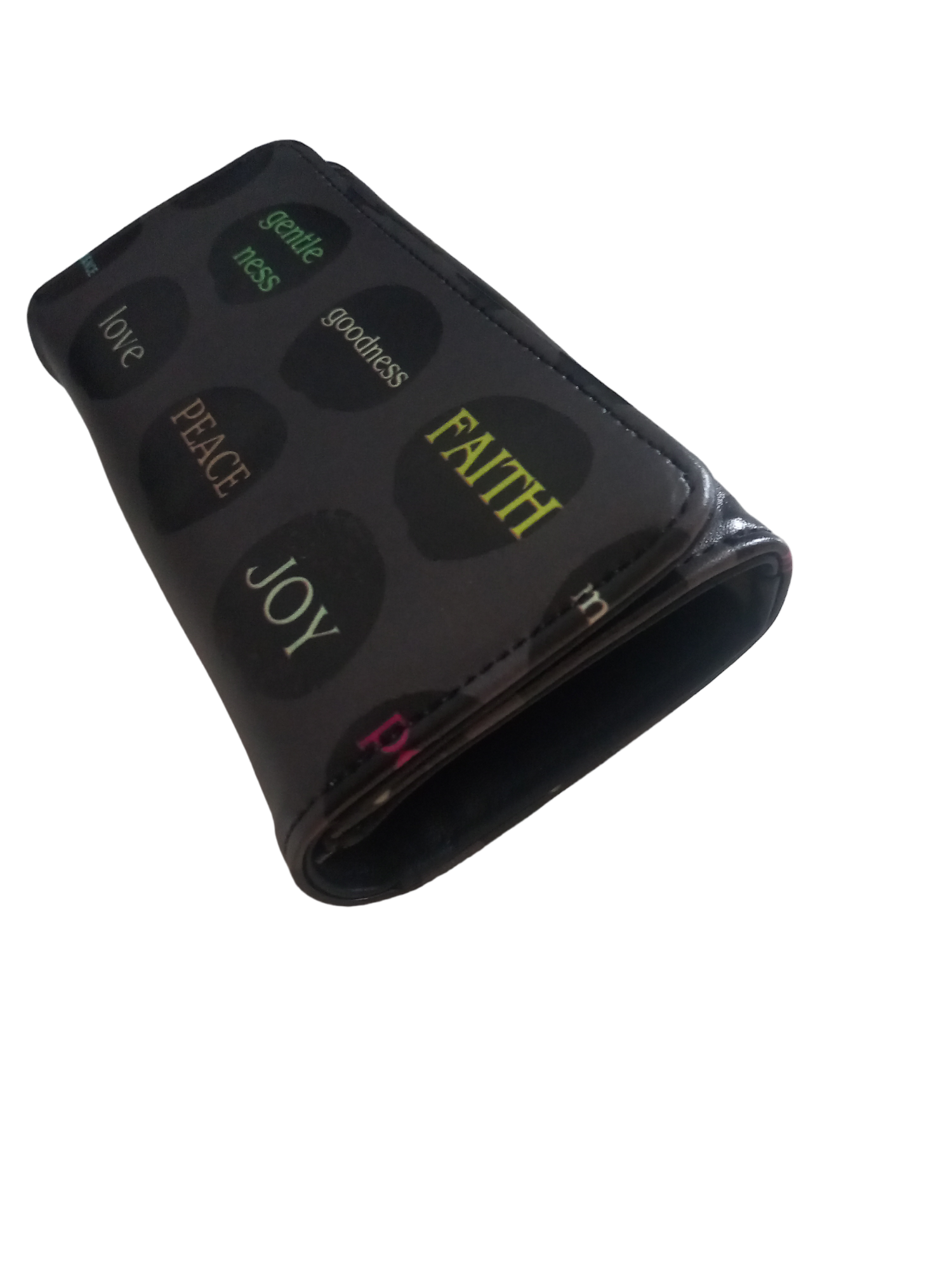 As well as our zip up purse the FOS foldover is your alternative. The words on this purse will encourage and inspire and help you to remember the importance of each word.