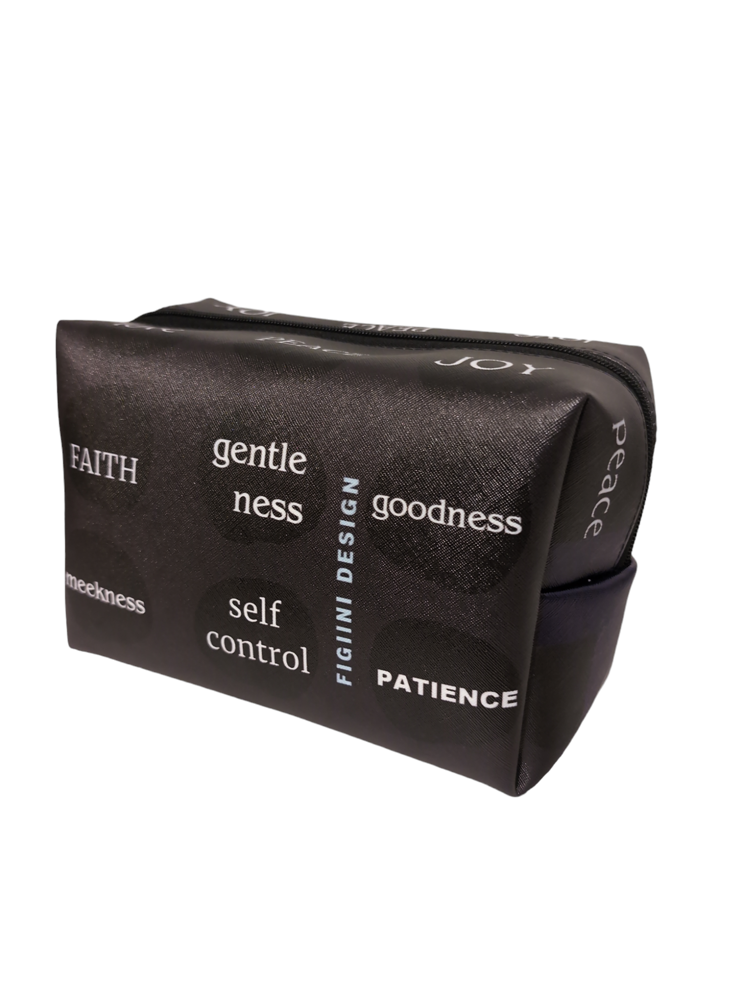 Our generously sized "FOS" print travel pouch, with a midnight blue stripe, is perfect for those trips away or for everyday.